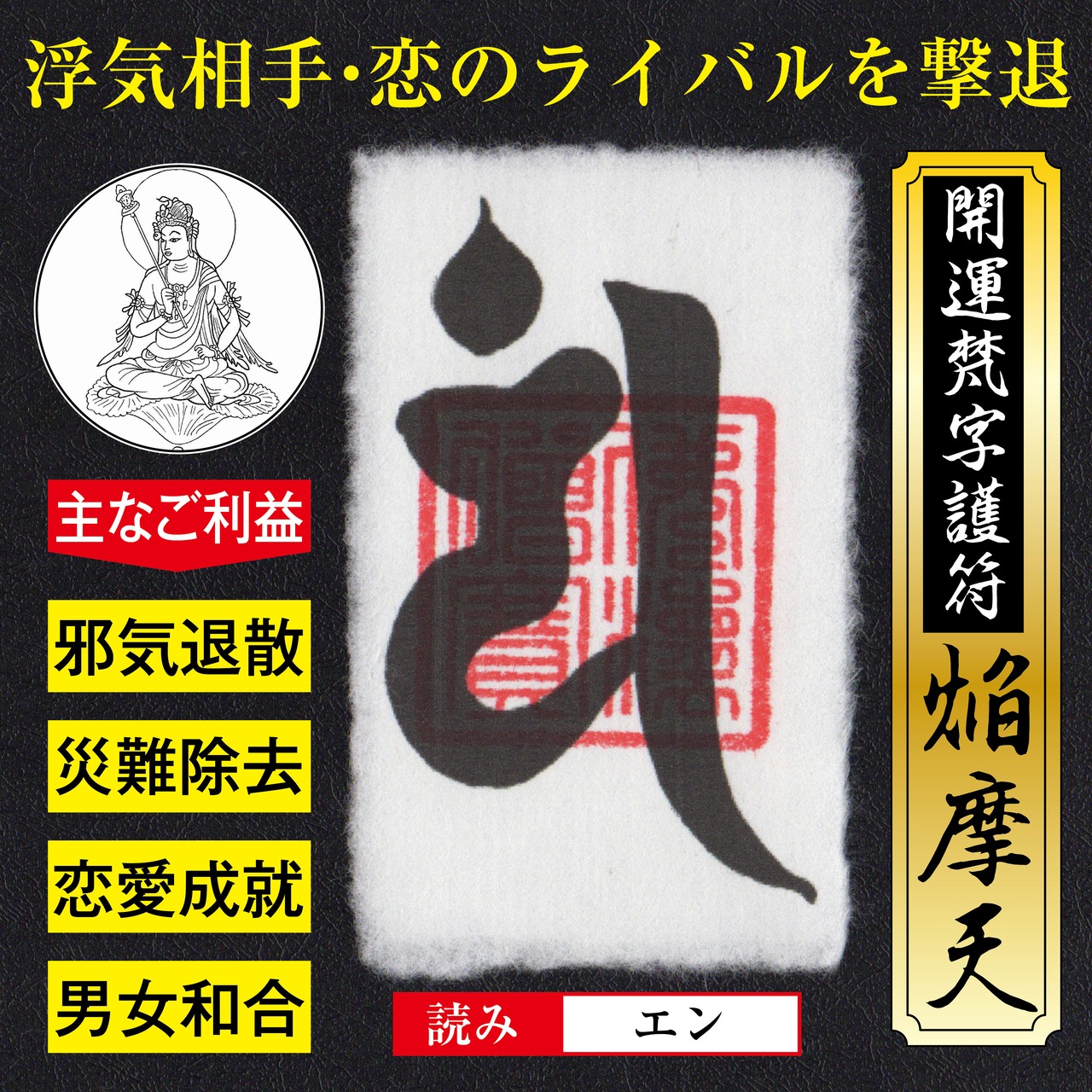 焔摩天(えんまてん)の絶大なご利益で、浮気防止・恋のライバル撃退・邪気退散・災難除去・恋愛成就・男女和合を授けてくれる強力な護符です。